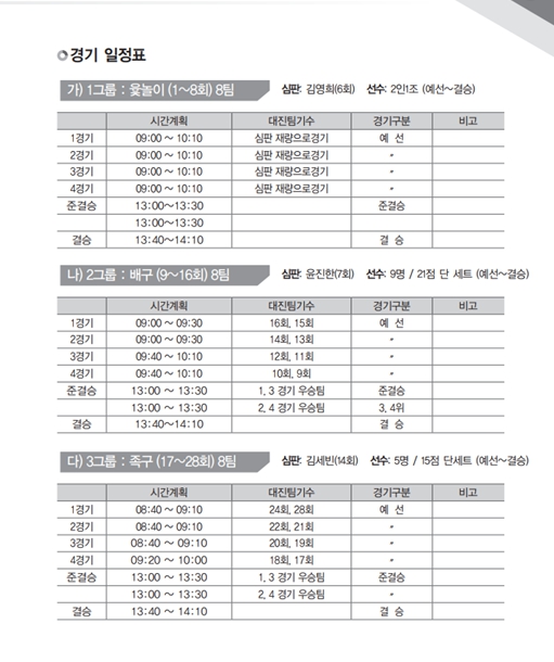 순천공고 총동문회 제44차 체육대회 경기진행 및 대진표 입니다. 참고하세요. 페이지 정보 작성자 총동문회 댓글 0건 조회 2,085회 작성일 23-10-19 16:38 목록 답변 본문 이전글순천공고총동문회 회장 이.취임식 초대합니다. 23.11.15 다음글제44차 순천공업고등학교 총동문회체육대회 안내 * 많은 참여 바랍니다.* 23.10.12 댓글 0 댓글목록 등록된 댓글이 없습니다.