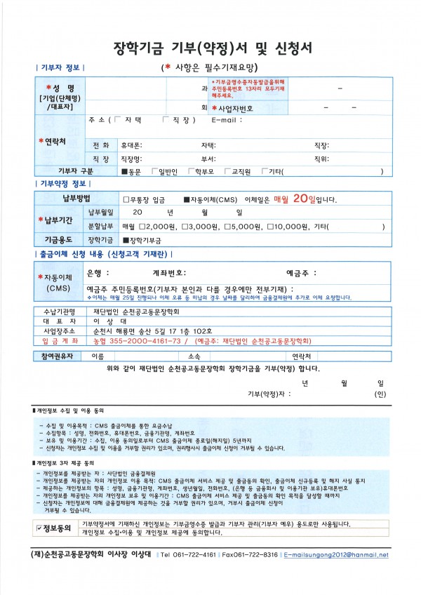 ● 정보 변경이 필요한 경우 (재)순천공고동문장학회로 연락해주세요