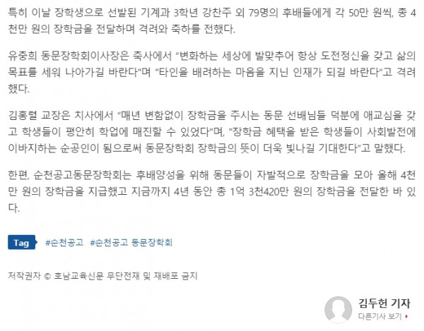 재단법인 순천공고 동문장학회, 후배들에게 장학금 4천만원 전달 페이지 정보 작성자 총동문회 댓글 0건 조회 846회 작성일 21-06-02 11:16 목록 답변 본문 - 이전글2022년도 한해 순천공고동문장학회를 사랑해 주셔서 대단히 감사합니다. 23.01.21 다음글2021학년도 (재)순천공고동문장학회 장학금 지급예정(2021.05.28.) 21.05.25 댓글 0 댓글목록 등록된 댓글이 없습니다.
