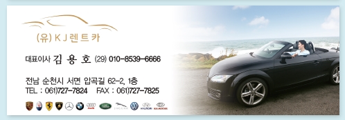 목록 답변 본문 (유)KJ렌트카 대표이사 김용호 (29회) 주소 : 전남 순천시 서면 압곡길 62-2, 1층 전화 : 061)727-7824, 010-8539-6666 팩스 : 061)727-7825 - 이전글탑 블라인드 21.12.09 다음글통신법인 (주)서광 21.12.09